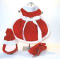 レッドカラーのベルベットとホワイトリボンがあわさったクリスマスデザインの犬用ドレスセットです。