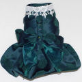 ベルベットを薔薇模様にエンボス加工、サテン生地を二重に重ねて丸みを持たせている犬用ドレスです。